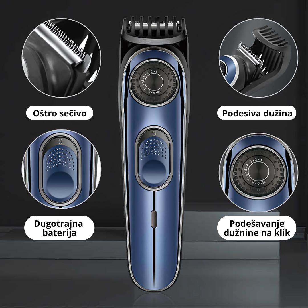 Trimer je opremljen moćnim motorom koji bez problema savladava sve tipove kose, od tanke do guste. Njegova snaga i preciznost osiguravaju glatko i efikasno šišanje, bez povlačenja ili zapinjanja. Bilo da uređujete bradu, kosu ili druge detalje, ovaj trimer pruža vrhunske rezultate svaki put.