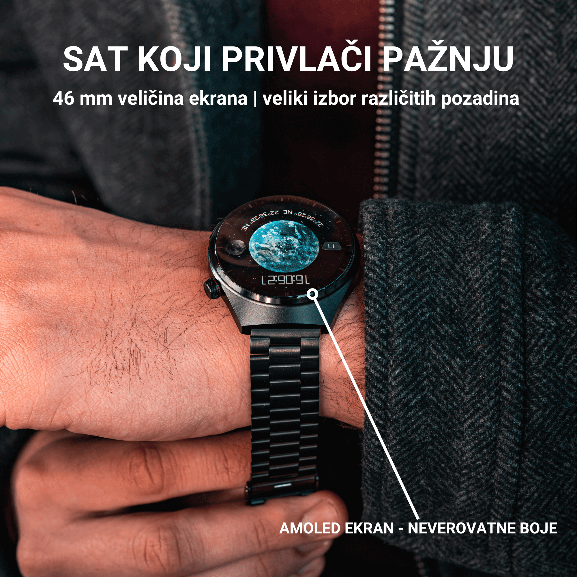 Amoled ekran ima neverovatnu rezoluciju, a veličina je 46mm.